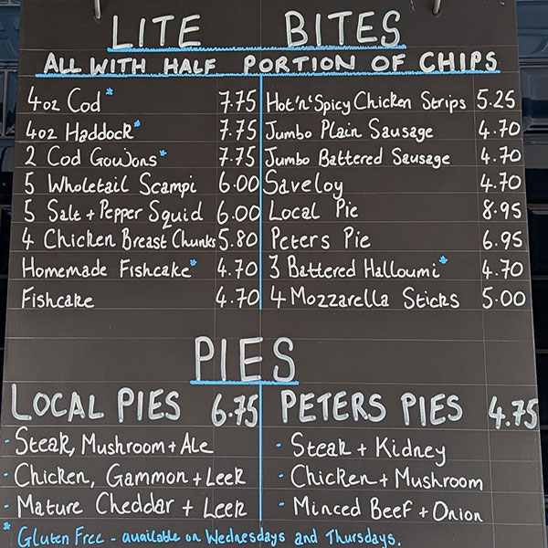 Gluten Free Batter is available on Wednesday and Thursday evenings between 4.45pm till 8.15pm.